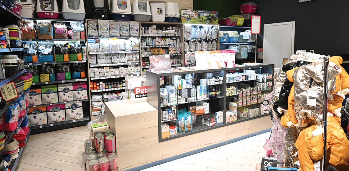 U specijalizovanim prodajnim formatima za kućne ljubimce jasno se prepoznaje trend da kupac želi da kupi sve na jednom mjestu, i da stekne impresiju da se nalazi u objektu koji nudi najbolji izbor za njegovog ljubimca. Zato je Pet Republic u okviru ovog prodajnog mjesta ponudio i asortiman veterinarske apoteke, čime usluga objekta postaje zaista sveobuhvatna.
